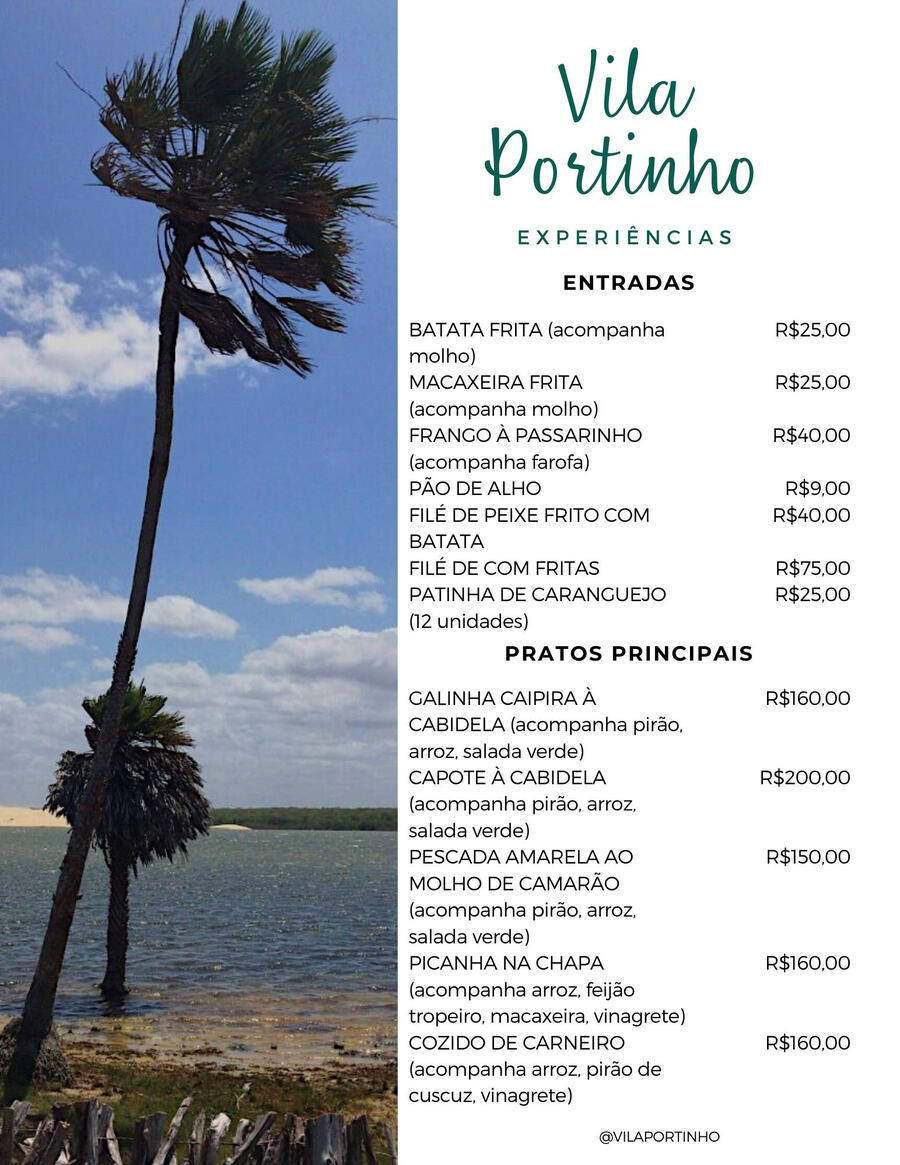 Seja bem vindo à Lagoa do Portinho! Um espaço familiar de conforto e sossego para você comer bem, enquanto aprecia a bela vista para a lagoa, suas dunas e mangue!